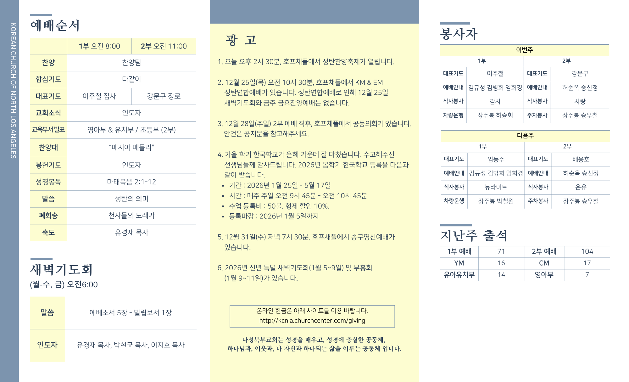 2025년 12월 21일 교회주보 페이지 정보 작성자 나성북부교회 댓글 0건 조회 40회 작성일 25-12-20 10:57 목록 본문 2025년 12월 21일 교회주보 다음글2025년 12월 14일 교회주보 25.12.13 목록 댓글 0 댓글목록 등록된 댓글이 없습니다.