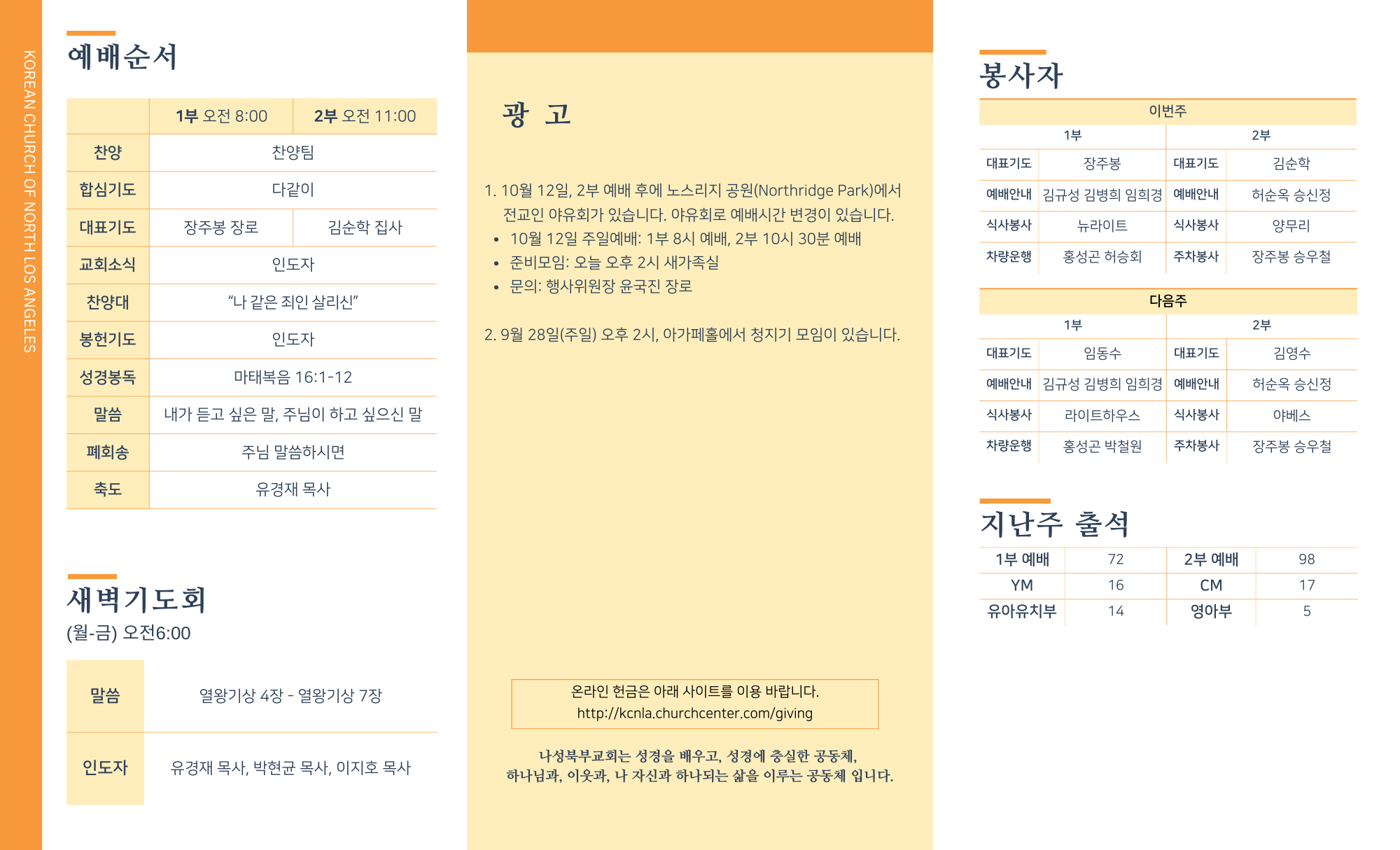 2025년 9월 21일 교회주보 페이지 정보 작성자 나성북부교회 댓글 0건 조회 383회 작성일 25-09-20 10:43 목록 본문 2025년 9월 21일 교회주보 이전글2025년 9월 28일 교회주보 25.09.27 다음글2025년 9월 14일 교회주보 25.09.13 목록 댓글 0 댓글목록 등록된 댓글이 없습니다.